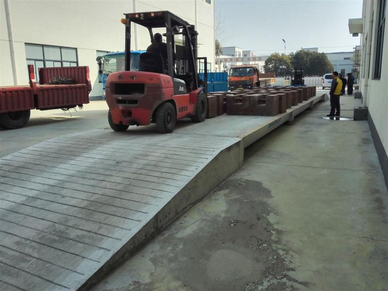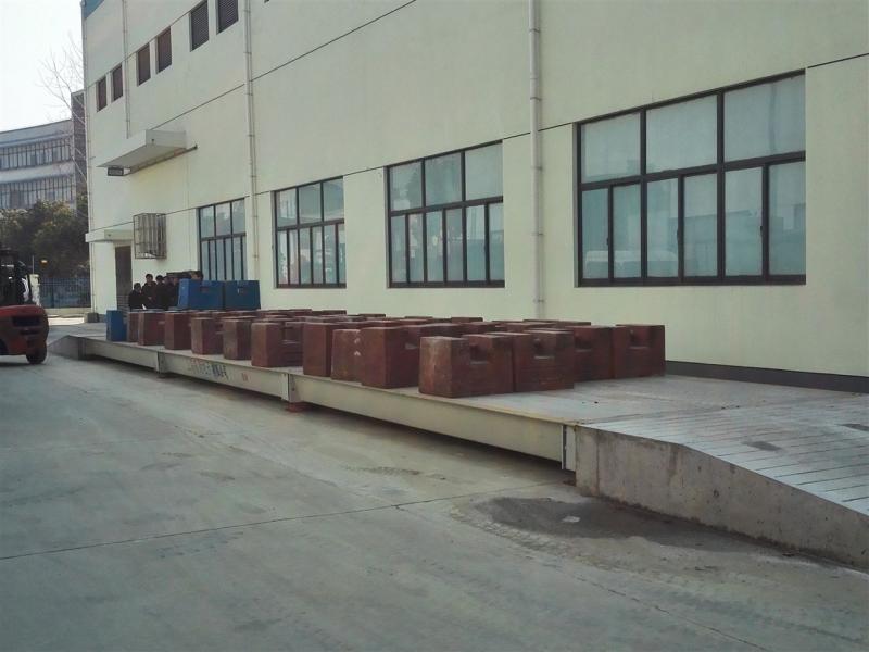 武漢地磅廠 100噸數字式汽車衡價格出廠檢驗時,對秤體集中載荷進行超載測試,保證每增加稱量50t秤體角度變形小于1mm回彈率100%,連續滿稱量輾壓5萬小時,秤體無疲勞性變形。國際二級砝碼200t可以同時應對廠內標定及現場檢驗、維修。